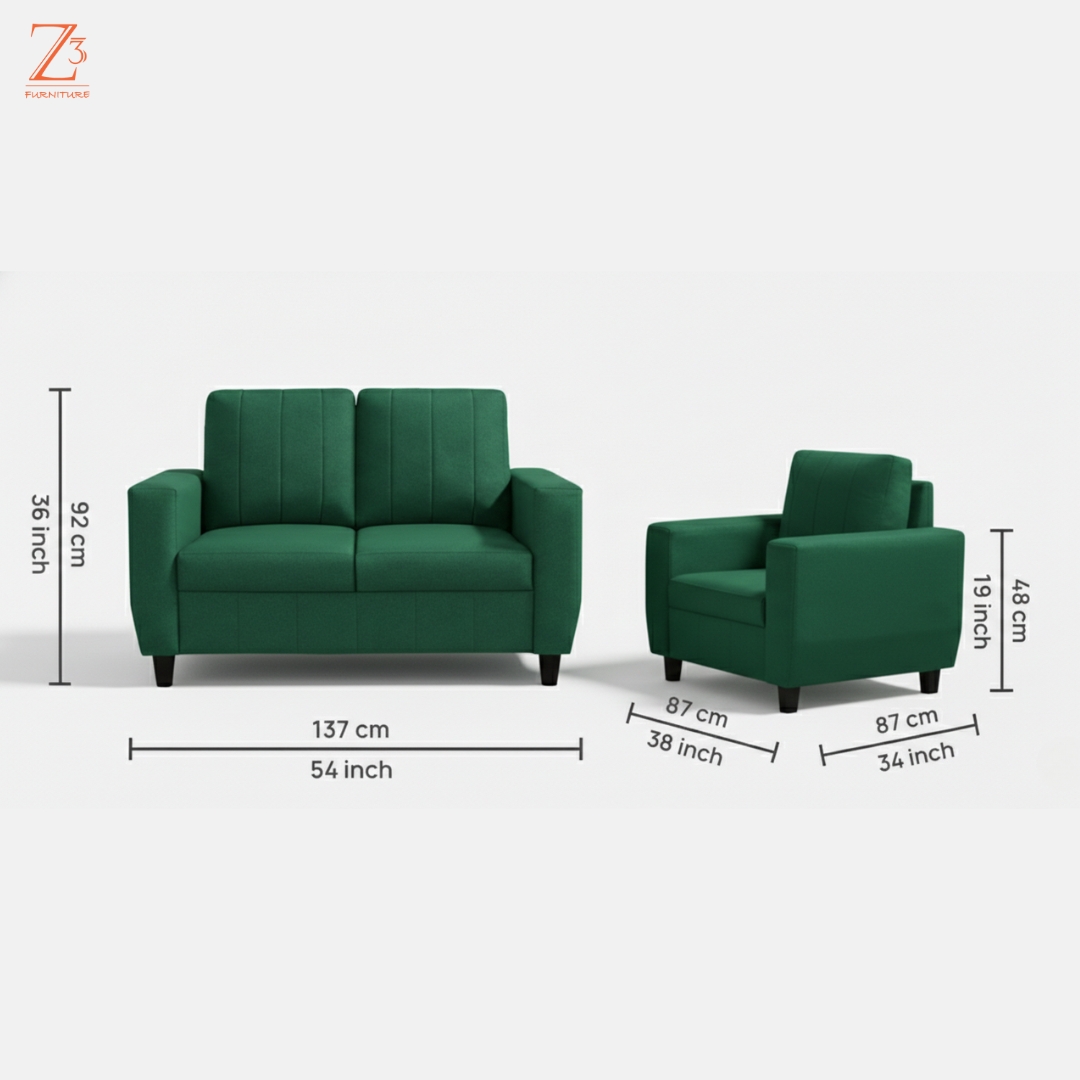 Built on a strong solid wood frame with high-density foam cushioning, the sofa set delivers balanced comfort and robust support for family gatherings, movie nights, or casual seating. The contemporary design in a vibrant green hue adds a fresh accent to your interior décor, while the compact layout makes it ideal for medium to large living areas.