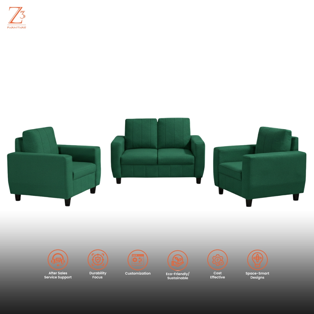 The Z Cube BAE Green Fabric 2+1+1 Seater Sofa Set is a stylish and comfortable seating solution designed to transform your living room with contemporary charm and everyday comfort. Upholstered in soft yet durable green fabric, this sofa set includes a 2-seater and two single chairs that together create a cohesive and inviting seating arrangement.