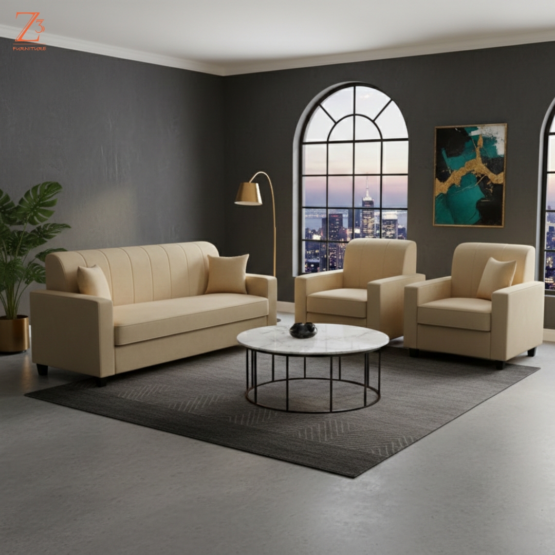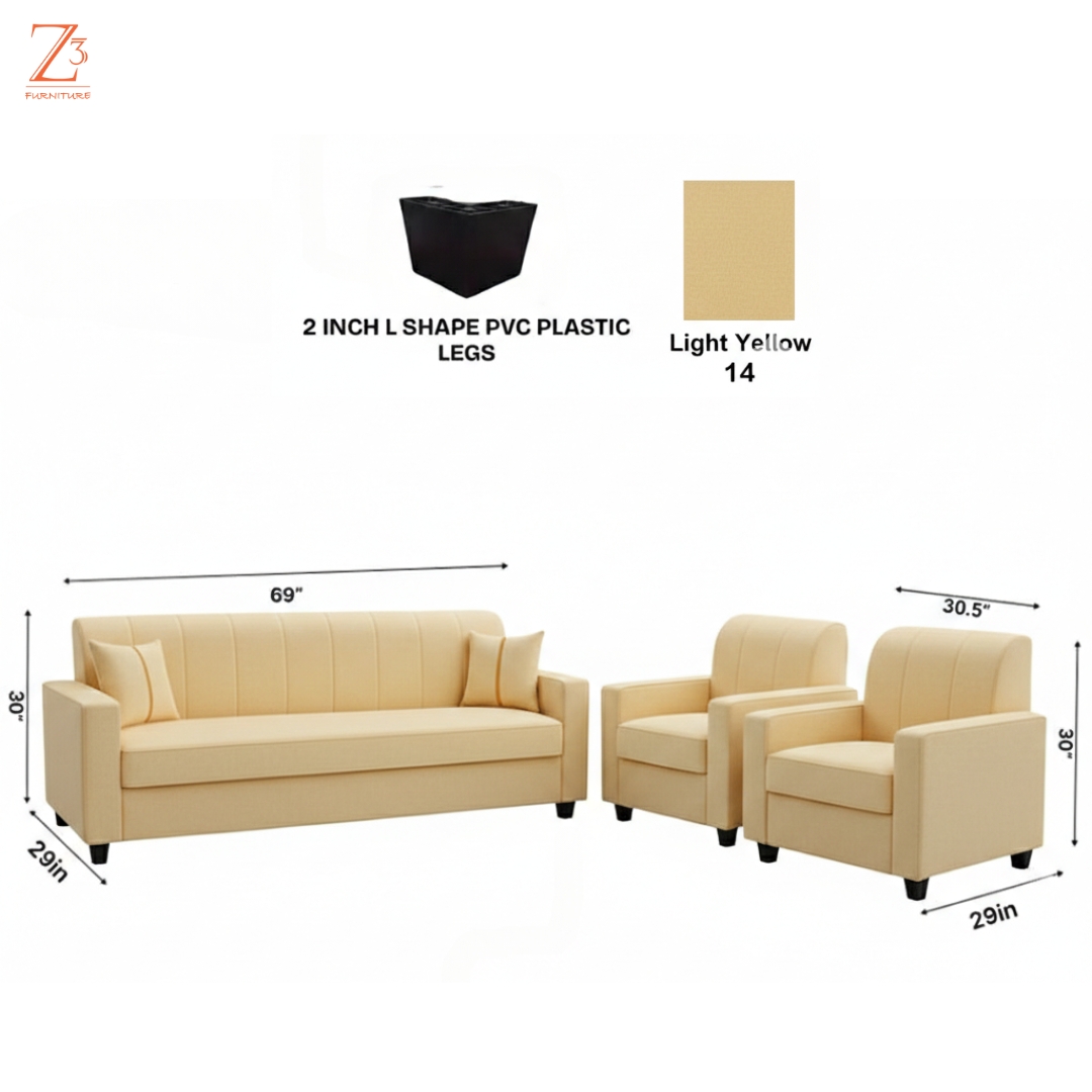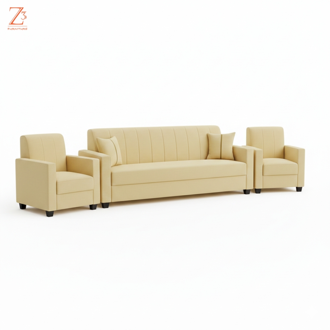 The Z Cube Light Yellow Fabric 3+1+1 Sofa Set is ideal for homeowners who want a stylish yet functional sofa that fits both modern and contemporary interior designs. Its Light Yellow upholstery adds a fresh look to your living room, while the comfort-oriented seat design ensures a relaxed seating experience for family gatherings and guest visits. Thoughtfully engineered with a sturdy wood frame and high-density foam, this set delivers reliable comfort and long-lasting performance for everyday living.