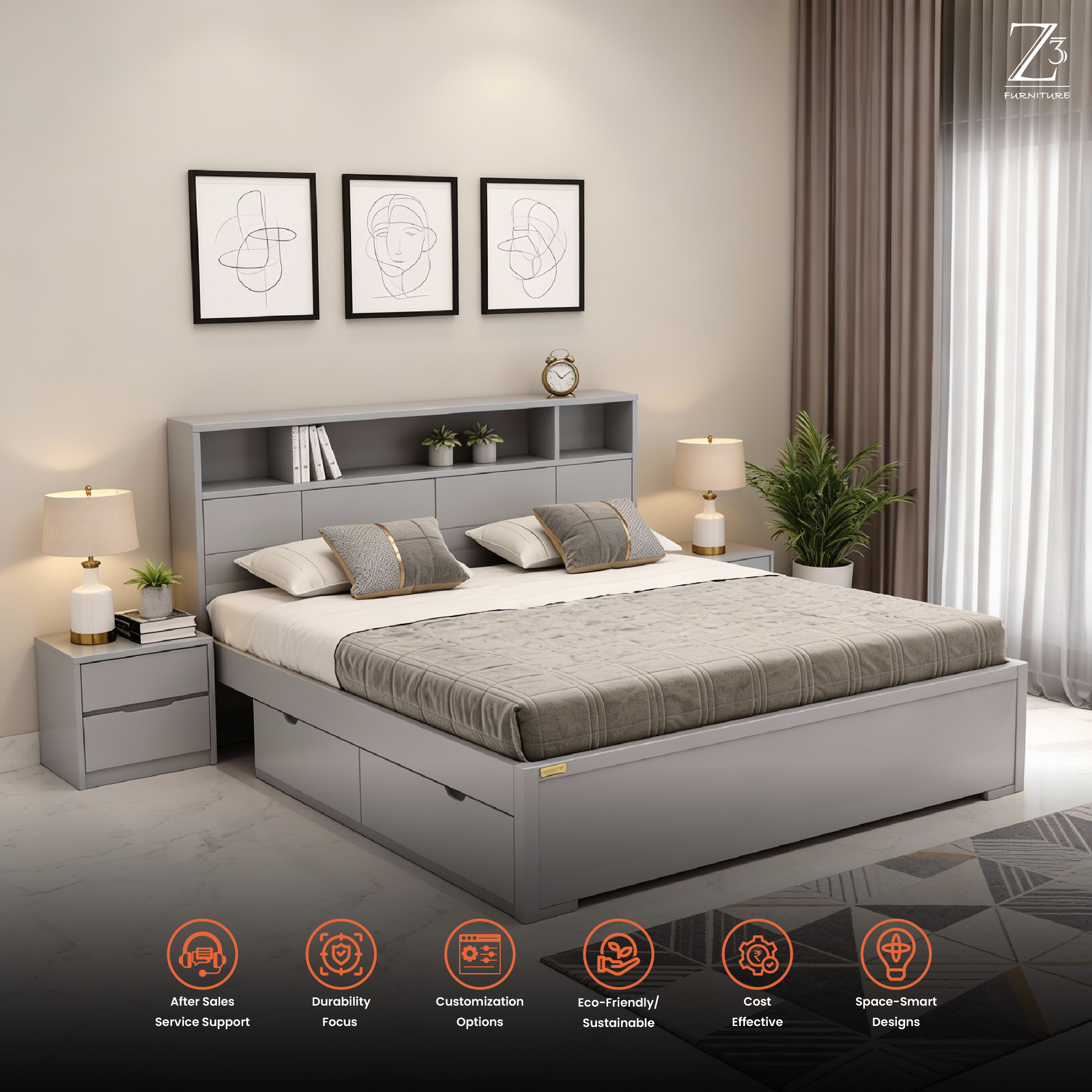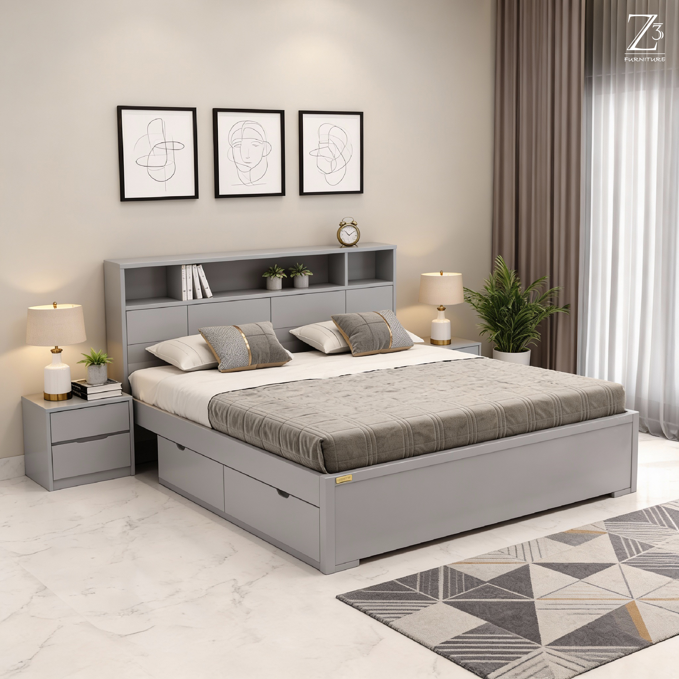 ✔ Elegant headboard enhances bedroom aesthetics