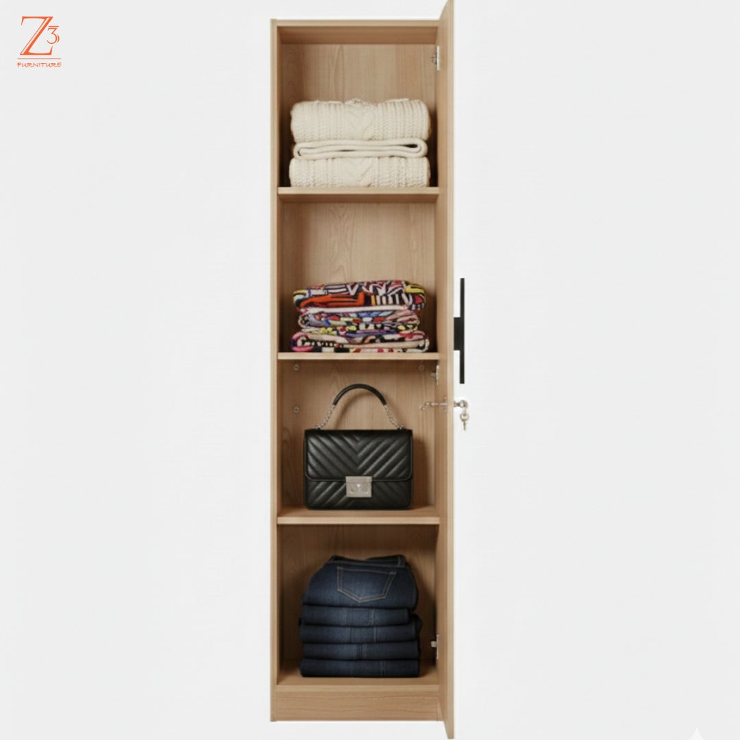 ✔ Single-door wardrobe with spacious interior