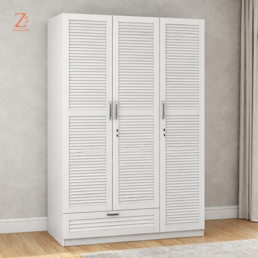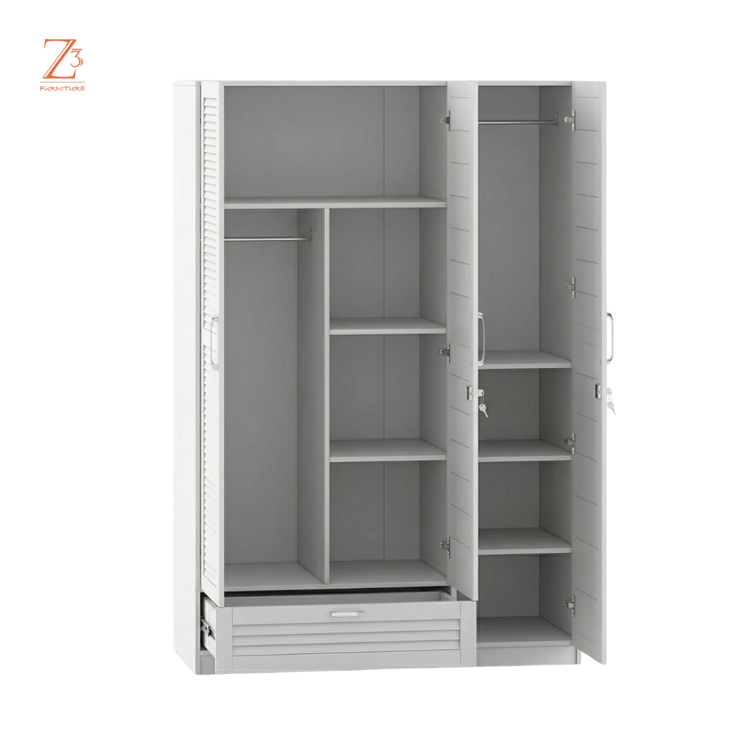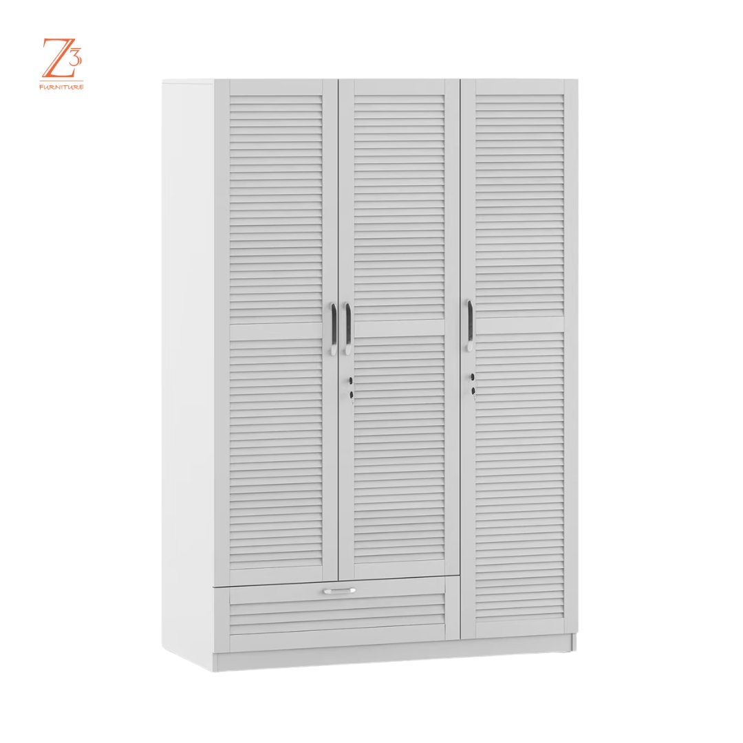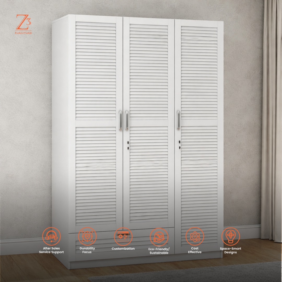 Smartly designed for modern bedrooms, this Luxe Three Door Wardrobe delivers maximum organization without wasting space. Featuring 7 spacious shelves, 1 smooth-glide drawer, and 2 dedicated hanging sections, it keeps clothes, accessories, and essentials perfectly sorted. A clean, functional storage upgrade built for everyday convenience and clutter-free living.