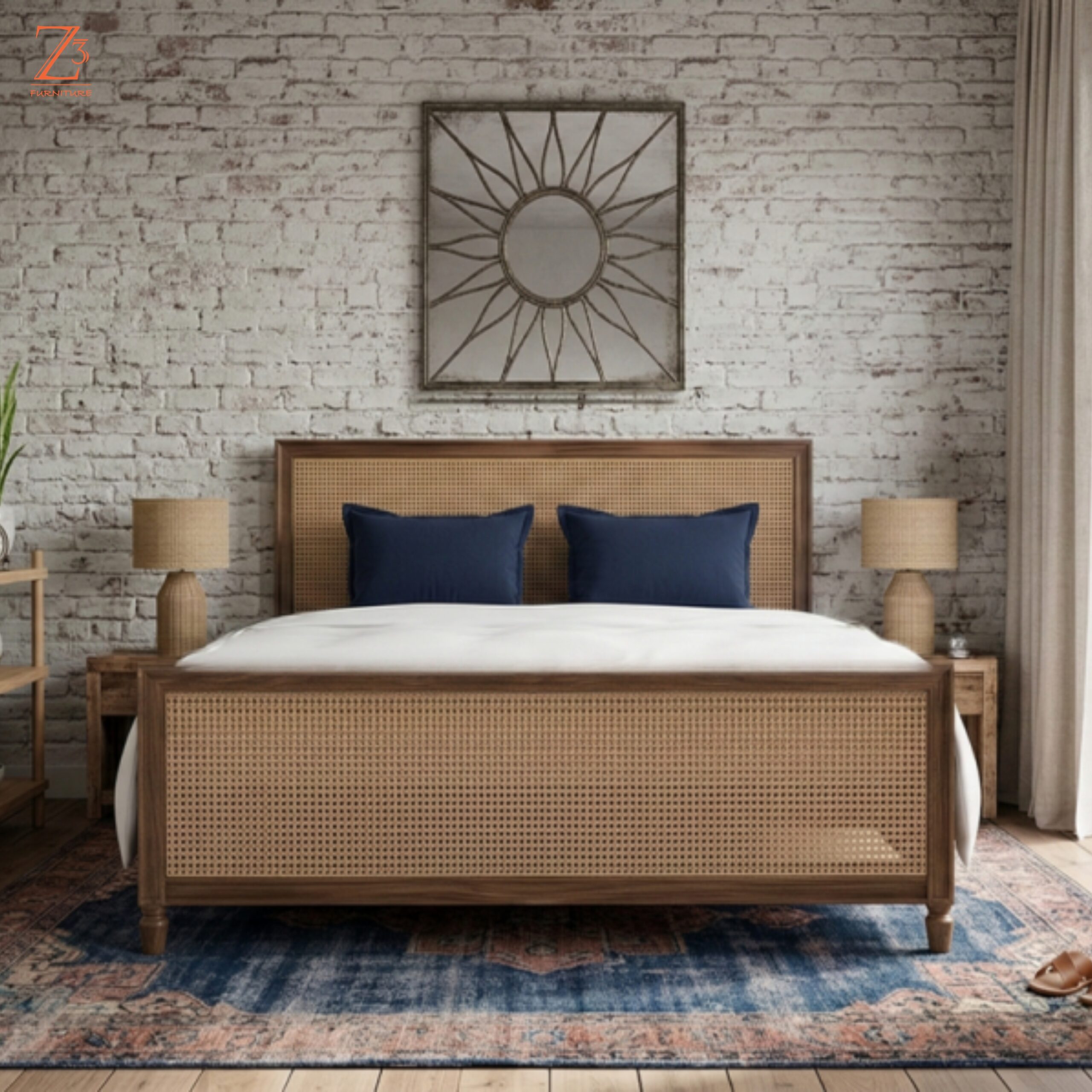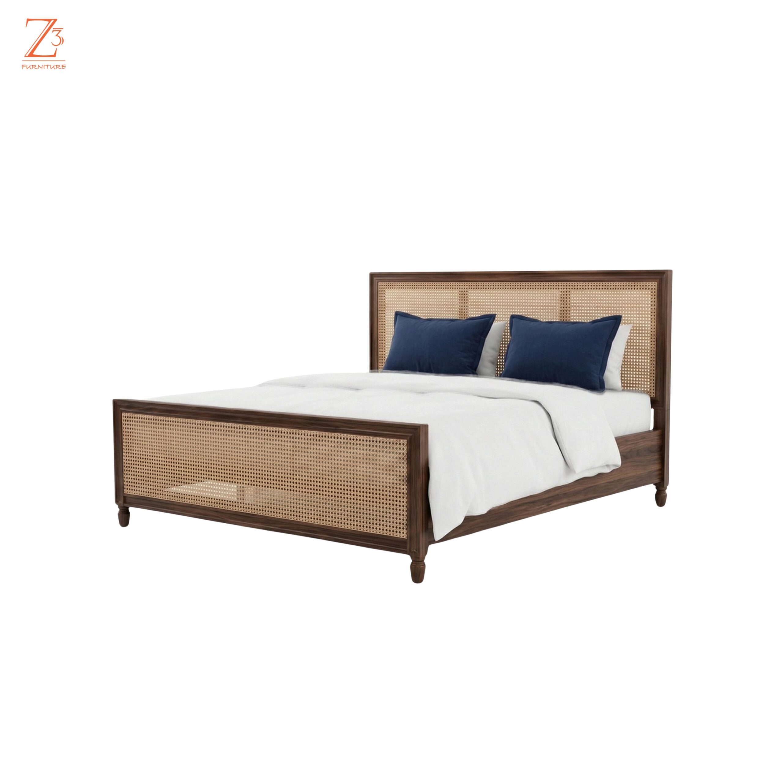 Its sturdy wooden frame ensures durability and reliable support for everyday use, while the breathable cane detailing enhances visual appeal and comfort. Designed in a queen-size format, this bed provides spacious sleeping comfort while fitting beautifully into modern apartments and bedrooms.