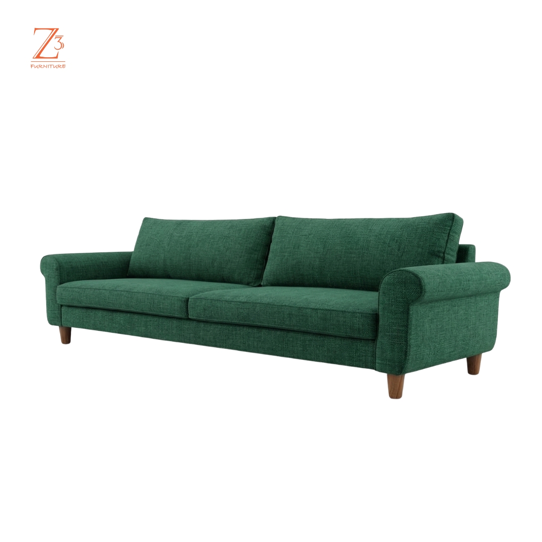 Built with a durable hardwood frame and sturdy wooden legs, the sofa ensures long-lasting structural strength and stability. The seating is enhanced with high-density foam cushioning, providing excellent comfort and support for daily relaxation, family gatherings, or entertaining guests.