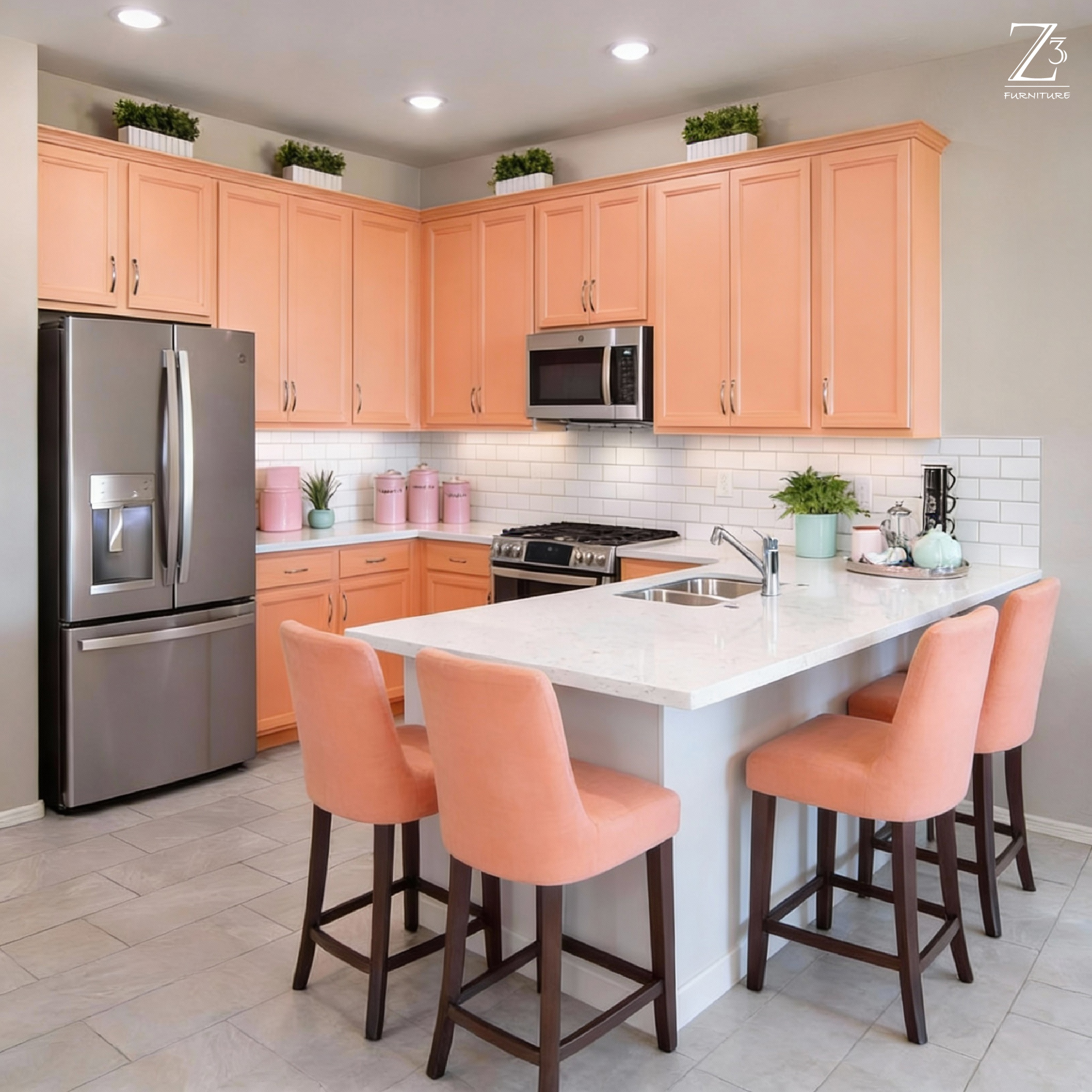 Our Peninsula Kitchen design extends from your main kitchen cabinets, creating an additional workspace that doubles as a room divider. This versatile layout is perfect for open-plan living spaces, providing extra counter space and storage while maintaining visual flow.