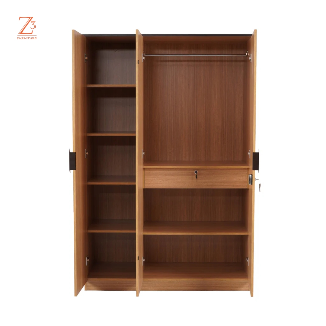 Crafted for smart, streamlined organization, this Platinum Three Door Wardrobe offers a well-balanced storage layout with 7 spacious shelves, 1 smooth-glide drawer, and a dedicated hanging section to keep garments neatly arranged. The integrated mirror adds daily convenience while enhancing the room’s sense of space — a stylish and practical addition to any modern bedroom.