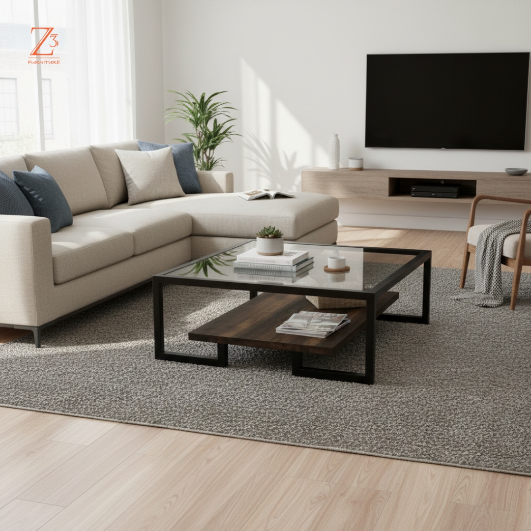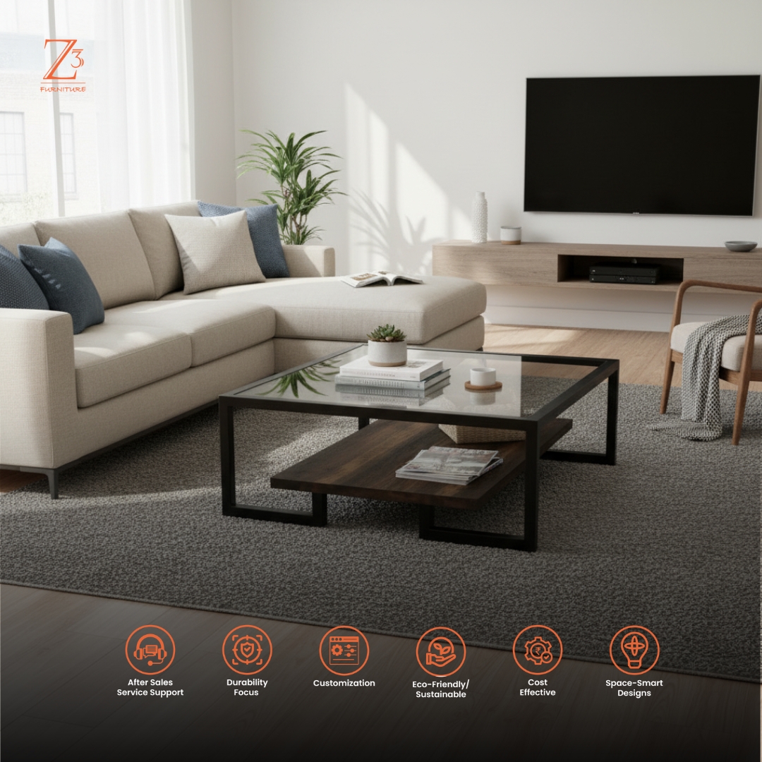 The SANTA-3 Centre Table by Z Cube Furniture is designed to add a modern and stylish touch to your living room. Featuring a powder coated MS frame, toughened glass tabletop, and a laminated shelf, this centre table combines durability with contemporary aesthetics.