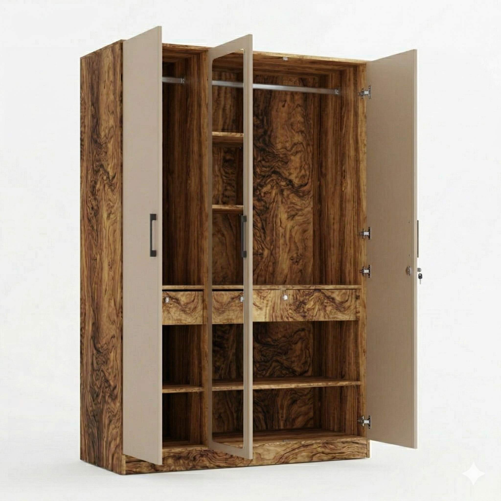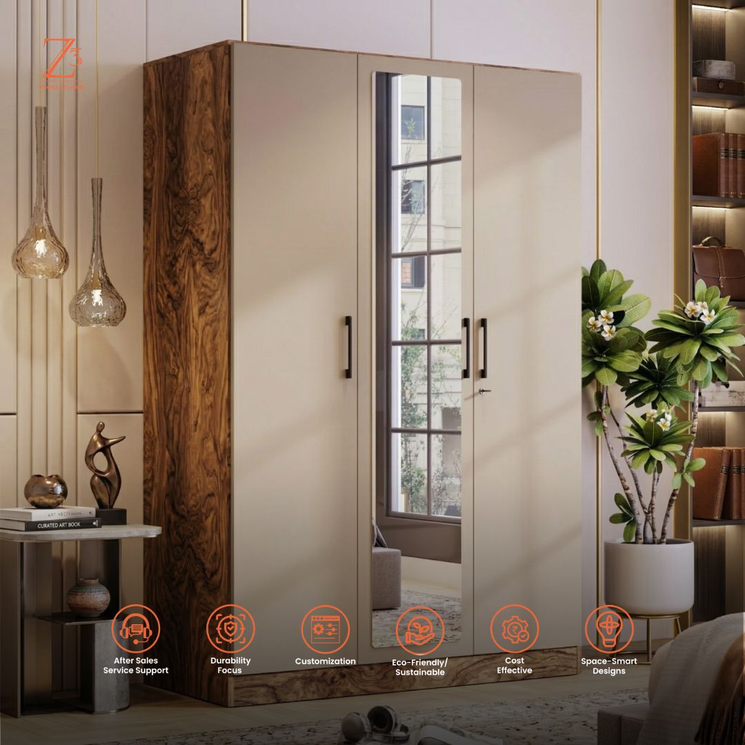 Crafted for spacious and efficient organization, this Titanedge Four Door Wardrobe by Z Cube Furniture is built from durable engineered wood. It offers 4 shelves, 2 hanging spaces, and 2 drawers, enhanced with auto-closing hinges and a secure lock. The built-in mirror adds everyday convenience while elevating the modern design. Z Cube Furniture is one of the best furniture makers in Mumbai, known for smart storage and lasting quality.
